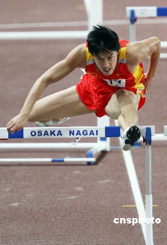 八月三十一日晚,世界纪录保持者、中国选手刘翔在第十一届世界田径锦标赛男子一百一十米栏比赛中,以十二秒九五的成绩夺得金牌,实现世锦赛夺冠夙愿。中新社发 毛建军 摄