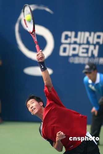 9月10日,中网迎来第一个正式比赛日。在中央球场率先举行的一场男单首轮比赛中,持外卡参赛的中国男一号于欣源对阵美国选手凯文·金。最终,于欣源没能在主场观众的支持下打出气势,他以3-6、5-7连输两盘,从而以0:2不敌凯文·金,无缘次轮。中新社发 富田 摄
