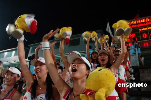 9月11日,中国网球公开赛继续在北京网球中心举行,在巴格达蒂斯与曾少眩的男单首轮比赛中现场的“网球宝贝”为赛事加油助威激情四溢。中新社发 廖攀 摄