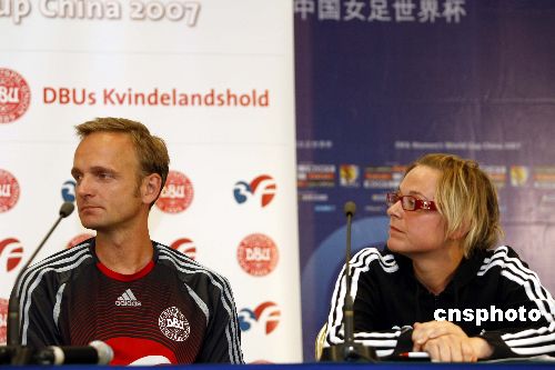 九月十四日,丹麦女足在武汉举行新闻发布会,主教练穆勒与丹麦队队员出席了发布会。