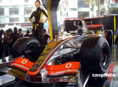 9月16日,苏州市民与世界顶级F1迈凯轮赛车“零距离接触”。当日,F1迈凯轮车队的最新赛车MP4-22赛车驶到苏州石路银河广场上,现场进行展示活动。通过模拟比赛和大型互动活动让喜欢F1赛车运动的车迷们过足了瘾。中新社发 王建康 摄