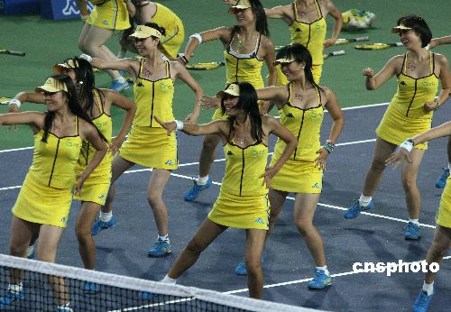 9月16日,2007年中国网球公开赛男子单打决赛后,中网宝贝登场表演。中网宝贝为中网带来不一样的魅力,她们用自己的精彩表演,为中网添加更多激情与活力。中新社发 鲁谷 摄