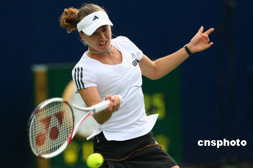 9月18日,中网公开赛女单首轮的比赛中,瑞士公主辛吉斯出场不到一个小时,以6:2和6:3击败中国选手孙甜甜晋级第二轮。第二轮,辛吉斯的对手是另外一名中国选手彭帅。中新社发 富田 摄