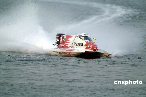 10月20日,2007F1摩托艇世锦赛中国深圳大奖赛在深圳南山后海开赛。目前排名2007赛季积分榜首位的萨米·瑟里奥继续表现神勇,两轮排位赛结束后,以单圈36.66秒的最好成绩位列第一;高迪奥·卡佩里尼紧随其后,以36.81秒的成绩屈居第二。按照国际惯例,当天下午进行的是排位赛和杆位赛,比赛吸引了数万观众到场观看。中新社发 吴峻 摄