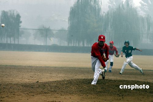 十月二十四日,二零零七全国棒球锦标赛进入第五天,河南四季胖哥队对天津雄狮队。天津队凭借丰富的实战经验迅速在比赛中占据主动,最终十比三胜河南队。中新社发 慎重 摄