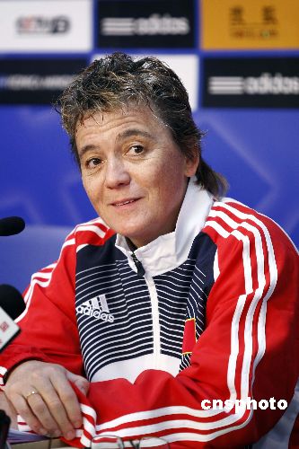 十月二十八日,中国足协在北京召开新闻发布会,宣布前法国女足主帅伊丽莎白正式接替多曼斯基的帅位,担任中国女足主教练。她的合约期将持续到2008年奥运会结束。伊丽莎白在发布会上发布了就职演说。中新社发 盛佳鹏 摄