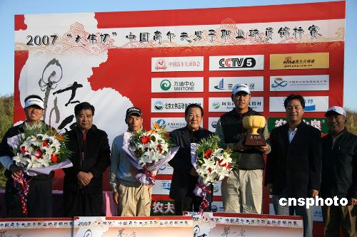 10月28日,首届“大佛杯中国高尔夫男子职业锦标赛”在北京太伟高尔夫俱乐部结束了第四轮的争夺,冠、亚、季军终见分晓。李超不负众望获得冠军,成绩为285杆(-3),也是唯一打出低于标准杆成绩的球员,独得36万元冠军奖金。来自福建的杨文章发挥出色,以293杆(+5)取得亚军,也是他参加职业比赛以来的最好成绩。同样来自福建的老将吴伟煌丧失良好开局,以294杆(+6)列第三名。中新社发 杜洋 摄