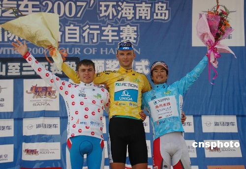 十一月十日,“海马汽车”二00七环海南岛国际公路自行车赛结束了所有的比赛,波兰队车手罗伯特·仁多士以二十六小时四十分四十八秒的总成绩获得个人总成绩冠军,他还获得了第七赛段五指山至三亚分赛段冠军和冲刺王。日本队车手冈崎和也以二十六小时四十一分二十一秒的成绩获得亚洲最佳。俄罗斯队车手米海勒·安德诺夫穿上了象征爬山王的圆点衫。波兰队还获得了本届赛事的团体冠军,成为本届比赛的最大赢家。中新社发 尹海明 摄