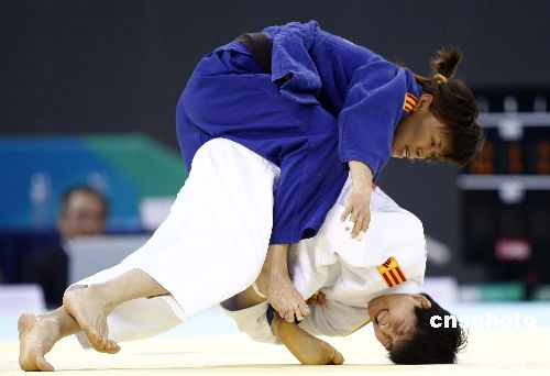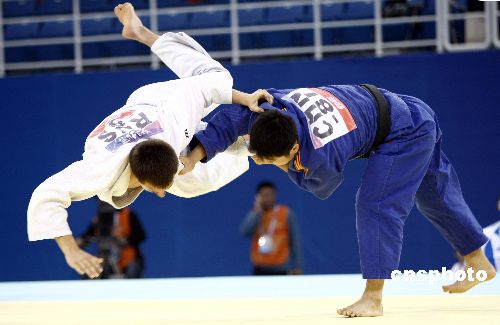 十一月十六日,“好运北京”2007年北京国际柔道公开赛在北京科技大学体育馆进行,比赛分为男子八十一公斤级和女子六十三公斤级。中新社发 盛佳鹏 摄