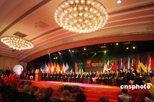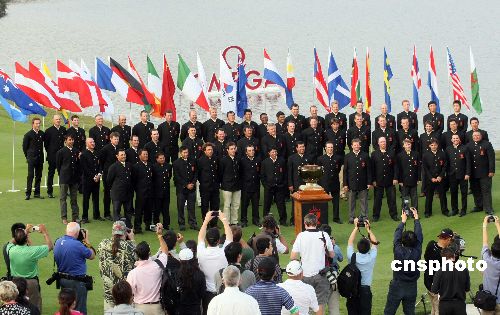 十一月二十一日,二〇〇七欧米茄观澜湖高尔夫世界杯开幕式在深圳观澜湖东莞会所举行,来自二十八个国家五十六名球手齐聚观澜湖展开高尔夫世界杯的角逐。中新社发 陈文 摄