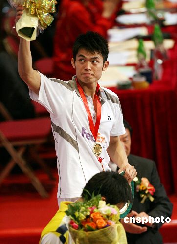 十二月二日,头号种子林丹在二零零七中国香港羽毛球超级赛决赛中以二比一战胜马来西亚名将李宗伟,夺得冠军。中新社发 武仲林 摄