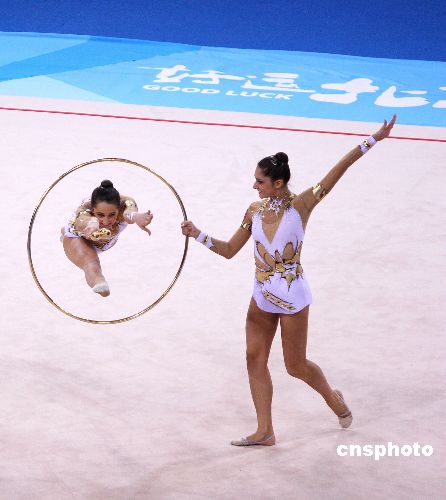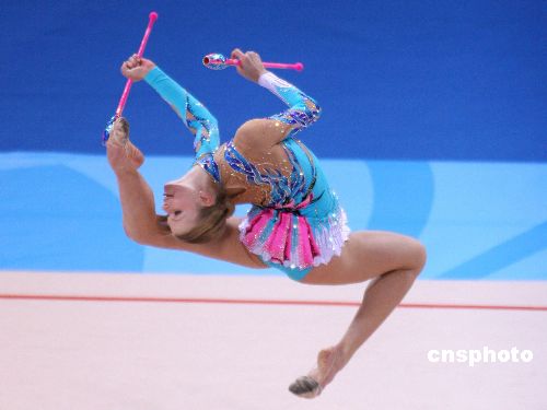 12月6日,“好运北京”艺术体操国际邀请赛继续在北京工业大学进行。继昨日团体绳操资格赛之后,当日团体进行的是圈和棒混合资格赛。中新社发 富田 摄