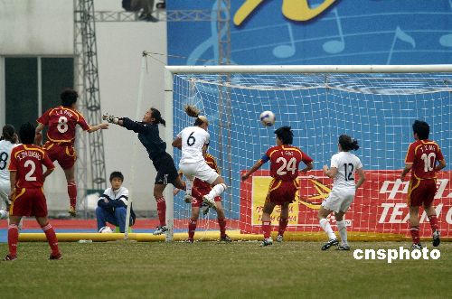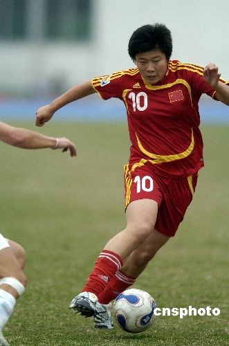 2007年12月19日下午,中国女足在广州黄埔体育中心体育场与新西兰女足热身赛中以4比0大胜。中新社发 吴峻 摄