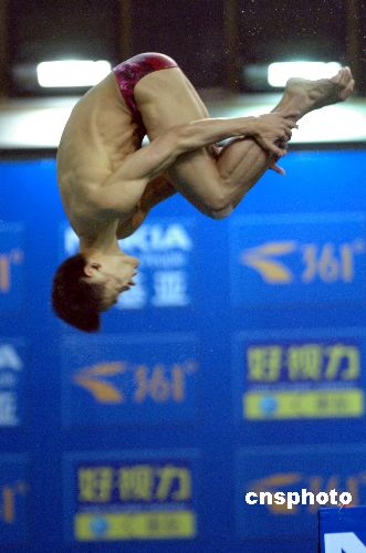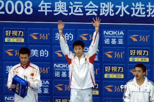 1月10日,2008年奥运会跳水选拔赛(济南站)全部结束。在最后一天的比赛中,北京选手林跃获得男子10米跳台冠军。奥运冠军胡佳仅获得第4名。中新社发 张侃 摄