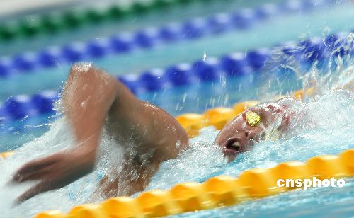 2月3日,“好运北京”2008年中国游泳公开赛在北京国家游泳中心“水立方”进行了6个项目的决赛,在男子1500米自由泳决赛中,中国选手张琳以15分05秒57的成绩轻松夺金。中新社发 盛佳鹏 摄
