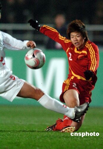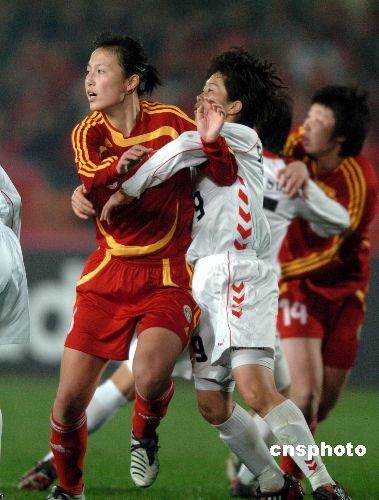 2008年2月21日晚,东亚女子足球锦标赛第二轮在重庆永川体育中心体育场进行。终场中国队在少一人的情况下以0比0战平朝鲜队。中新社发 吴峻 摄