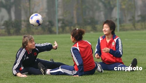 2月22日,中国女足姑娘在重庆文理学院足球训练场进行了分组对抗及“灵敏度”训练。主教练伊丽莎白还给訾晶晶开起了小灶,主训顶球、传球等技战术,为四国赛第三轮比赛对阵日本队做好准备。中新社发 陈仕川 摄