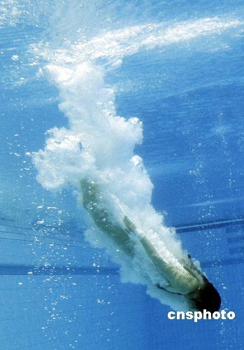 “跳水女皇”郭晶晶落后队友吴敏霞5.15分名列第二。中新社发 富田 摄