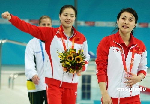 2月23日,“好运北京”国际泳联第16届跳水世界杯进入第五日,在女子3米跳板决赛中,吴敏霞在最后一跳顶住压力,发挥出色,以超越队友郭晶晶3.60分的成绩赢得金牌,这也是她获得的第2枚跳水世界杯个人项目金牌,郭晶晶以387.75分的总分摘得银牌,澳大利亚选手斯特拉顿(Sharleen Stratton)以250.79的总分摘得铜牌。中新社发 富田 摄