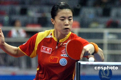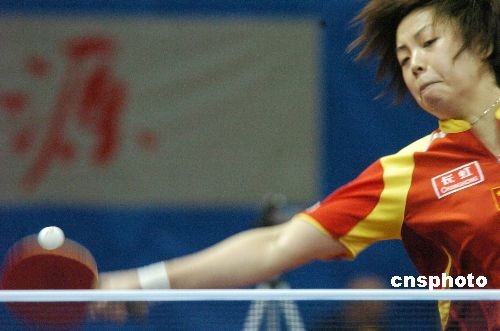 图为首先出场的张怡宁轻松战胜对手。