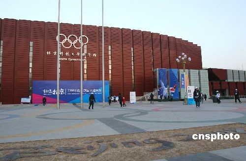 2月26日,“好运北京”2008跆拳道国际邀请赛在北京科技大学开幕,本次比赛共有来自27个国家和地区的运动队报名参赛。图为北京科技大学体育馆,该场馆将承担奥运会柔道、跆拳道和残奥会轮椅篮球、轮椅橄榄球四个项目的比赛。中新社发 富田 摄