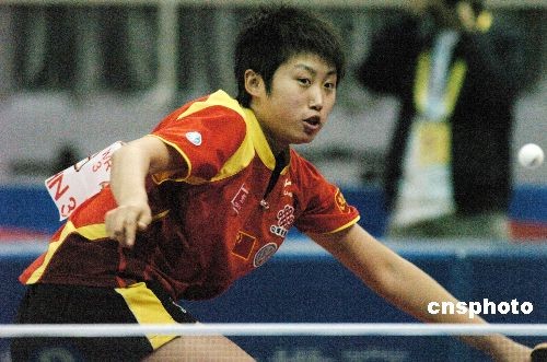 二月二十七日下午,世乒赛女团小组末轮中,中国队的郭跃、张怡宁和王楠组成强大阵容,以三比零战胜瑞典队,凭借A组头名身份挺进四分之一决赛。中新社发 柯小军 摄