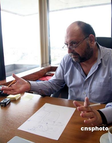 据希腊奥委会新闻部主任帕帕赫里斯多透露,3月24日将在希腊奥林匹亚举行的北京奥运会圣火采集仪式上,最为引人瞩目的取火现场只能安排包括一名中国记者在内的六名记者,而且全部是摄影记者。图为帕帕赫里斯多在办公室给记者展示圣火采集仪式的平面草图,他表示届时将对神圣的采集火种现场实施严格的限制措施。中新社发 钟诚 摄