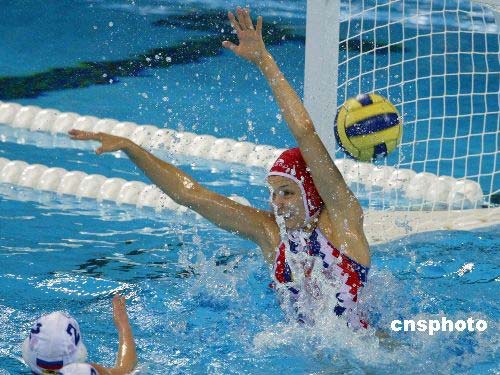 3月18日,十七年前建成的北京奥林匹克体育中心内的英东游泳馆(由已故香港爱国人士霍英东先生出资修建)经过一年多的整修后,迎来北京奥运会测试赛。“好运北京”2008中国水球公开赛在奥体中心英东游泳馆打响了揭幕战。首日进行的是女子组比赛,东道主中国队以6-9的比分,负于了悉尼奥运会冠军澳大利亚队。中新社发 富田 摄