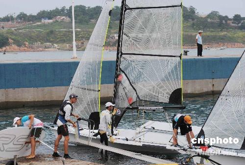 为在奥运会帆船比赛中取得好成绩,目前已有三十三个国家和地区的男女帆船运动员提前来到2008北京奥运会帆船赛举办地青岛,提前进行热身。图为各国运动员在青岛银海国际游艇俱乐部奥运会帆船训练基地做下海训练准备。中新社发 曲连遵 摄