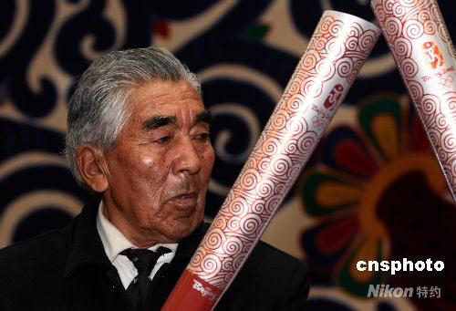 6月20日,北京奥运圣火接力活动在西藏拉萨举行前夕,75岁的藏族“登山英雄”贡布成为首棒火炬手。1958年,时为解放军战士的贡布被借调到国家登山队,开始与登山运动结下不解之缘。1960年5月25日,他与王富洲、屈银华一起登上世界第一峰——珠穆朗玛峰,实现人类首次从北坡登上珠峰的愿望,开创中国登山运动的新纪元。 中新社发 廖攀 摄