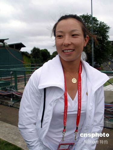 当地时间6月27日,温布尔登网球公开赛大爆冷门,中国选手郑洁打败世界排名第一的塞尔维亚球后伊万诺维奇,写下中国网球历史新页,她在赛后接受采访,露出胜利的微笑。中新社发 CNA 摄