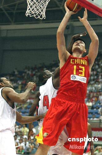 7月19日下午,中国男篮在杭州举行的2008斯坦科维奇洲际杯篮球赛的比赛中迎战北京奥运会同组对手安哥拉队,姚明继续替补出场砍下16分,但是中国队外线哑火失误过多以71比72负于对手。中新社发 任晨鸣 摄