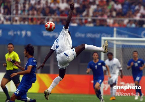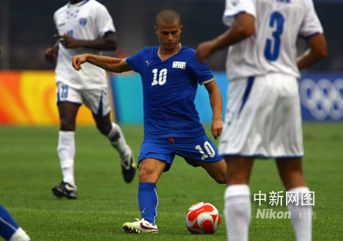 8月7日,北京奥运男足比赛开赛,洪都拉斯队与意大利队比赛在秦皇岛奥体中心举行,上半场意大利队2:0暂时领先洪都拉斯队。中新社记者 刘新 摄