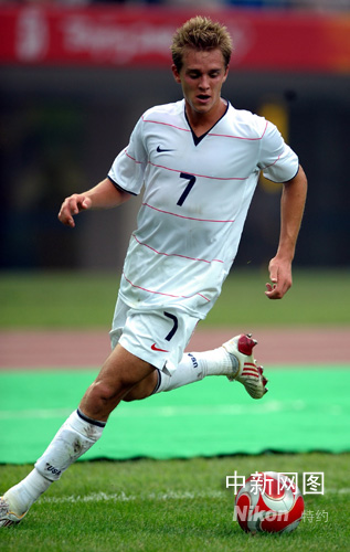 美日男足之战,美国队7号斯图尔特-霍尔登率先敲开日本球门。中新社记者 陈文 摄