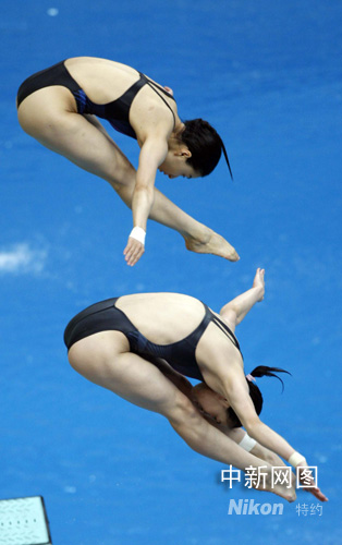 图:郭晶晶吴敏霞获女子双人三米板金牌