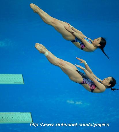 8月10日,素有“梦之队”之称的中国跳水队亮相水立方。黄金组合郭晶晶和吴敏霞获得女子双人三米板金牌。