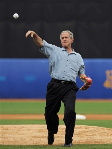 8月11日,美国总统布什现身五棵松棒球场,亲自上阵秀球技,并与美国棒球队运动员交谈并合影留念。从8月8日,布什相继来到“鸟巢”观看奥运开幕式,“水立方”观看游泳比赛,五棵松篮球馆观看篮球比赛,可称得上是美国最大牌的超级体育迷。