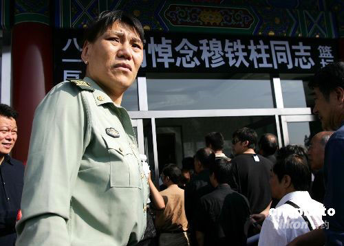 2008年9月18日上午9时,被誉为篮坛铁臂中流砥柱的篮坛名宿穆铁柱的追悼会在北京八宝山公墓举行,八一男女篮、八一体工大队的运动员、教练员以及各界自发前来的社会群众一道为巨人送行。中新社发 富田 摄