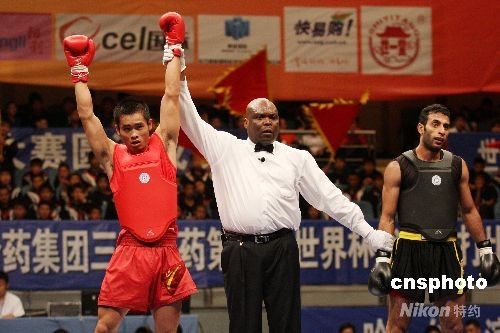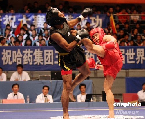 9月19日,“第四届世界杯武术散打比赛”在黑龙江举行。来自俄罗斯、伊朗、巴西、菲律宾、中国澳门等19个国家和地区的71名男女散打运动员参加比赛。中新社发 姚庭山 摄