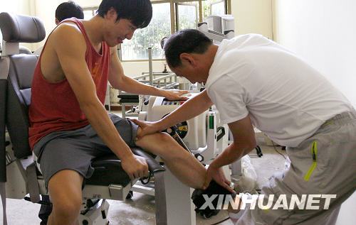 刘翔在进行腿部练习。新华社记者 凡军摄