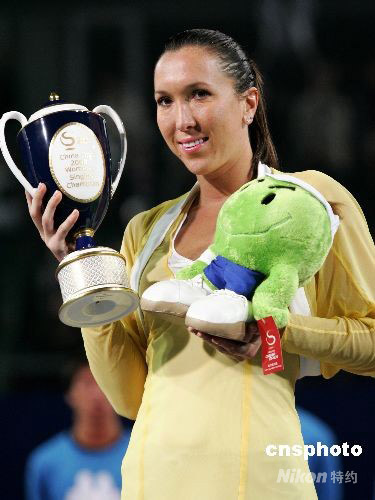 9月28日,在2008年中国网球公开赛女单冠亚军争夺战中,世界排名第二的塞尔维亚美女扬科维奇以6-3/6-2击败世界排名第7的俄红粉好手库兹涅佐娃,夺得女单冠军。这是她连续5次参赛以来第一次夺得中网女单冠军。中新社发 富田 摄