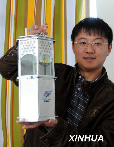 10月9日,第24届世界大学生冬季运动会手持火炬“冰韵天鹅”在哈尔滨正式亮相。此项赛事将于2009年2月在哈尔滨举行。新华社发(张清云 摄)