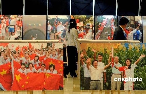 图为在总结大会上,火炬接力的图片展览。