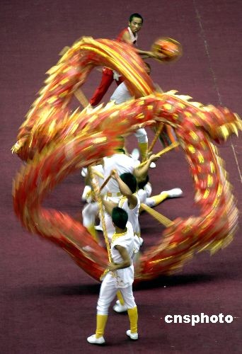 10月27日,第六届全国农运会舞龙规定套路比赛在泉州石狮体育馆举行,精彩的比赛让现场观众连连喝彩,掌声不断。中新社发 王东明 摄