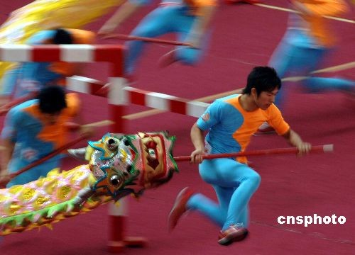 图:农运会舞龙舞狮比赛出神入化