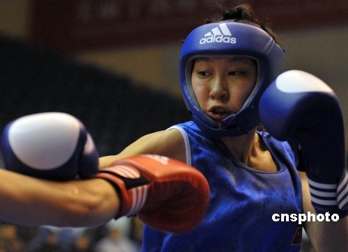 11月22日下午,2008世界女子拳击锦标赛在宁波体育中心雅戈尔体育馆拉开战幕,中国队的李思源在与美国的比赛中,战胜对手,取得第一场胜利。当天共进行了26场预赛。中新社发 李岩宏 摄