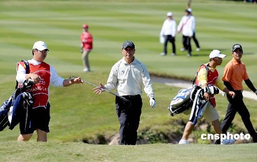 张连伟在世界杯高尔夫比赛中发挥神勇
