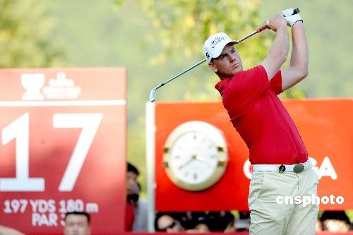 1130日,瑞典代表队选手罗伯特.卡尔森与搭档亨利克.斯滕森以-27杆的总成绩夺得2008欧米茄观澜湖高尔夫世界杯冠军。图为瑞典名将卡尔森在17号发球台开球。中新社发 陈文 摄