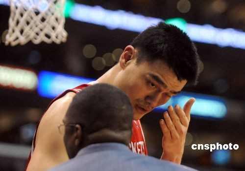 当地时间十二月十三日晚,NBA休斯敦火箭队在洛杉矶客场挑战洛杉矶快船队,结果以八十二比九十五失利。第三节开始不久,姚明左眼被击中后痛苦倒地,被迫暂时离场医治,几分钟后姚明重新上场。但此后,火箭队被逆转,最终失利。中新社发 张炜 摄