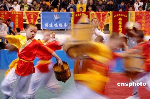 十二月十四日上午,“二00八闽台南少林传统武术交流大赛暨学术交流会”在福州市开幕。中新社发 郑祚声 摄